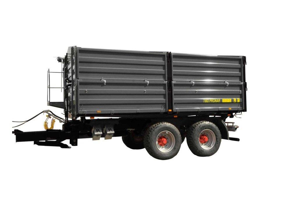 Se brochuren Find forhandler GALLERI SPECIFIKATIONER Pronar HJEMMESIDE Allround-tipvogn PRONAR T655 er en enkeltakslet tipvogn med 3-vejstip og manuel åbning af sider/bagklap. En enkel, robust vogn der læsser ca. 2 tons. Vognen er velegnet til kommuner, anlægsgartnere og andre med et behov for en smidig industrivogn, der er nem at komme rundt med. T655 har […]