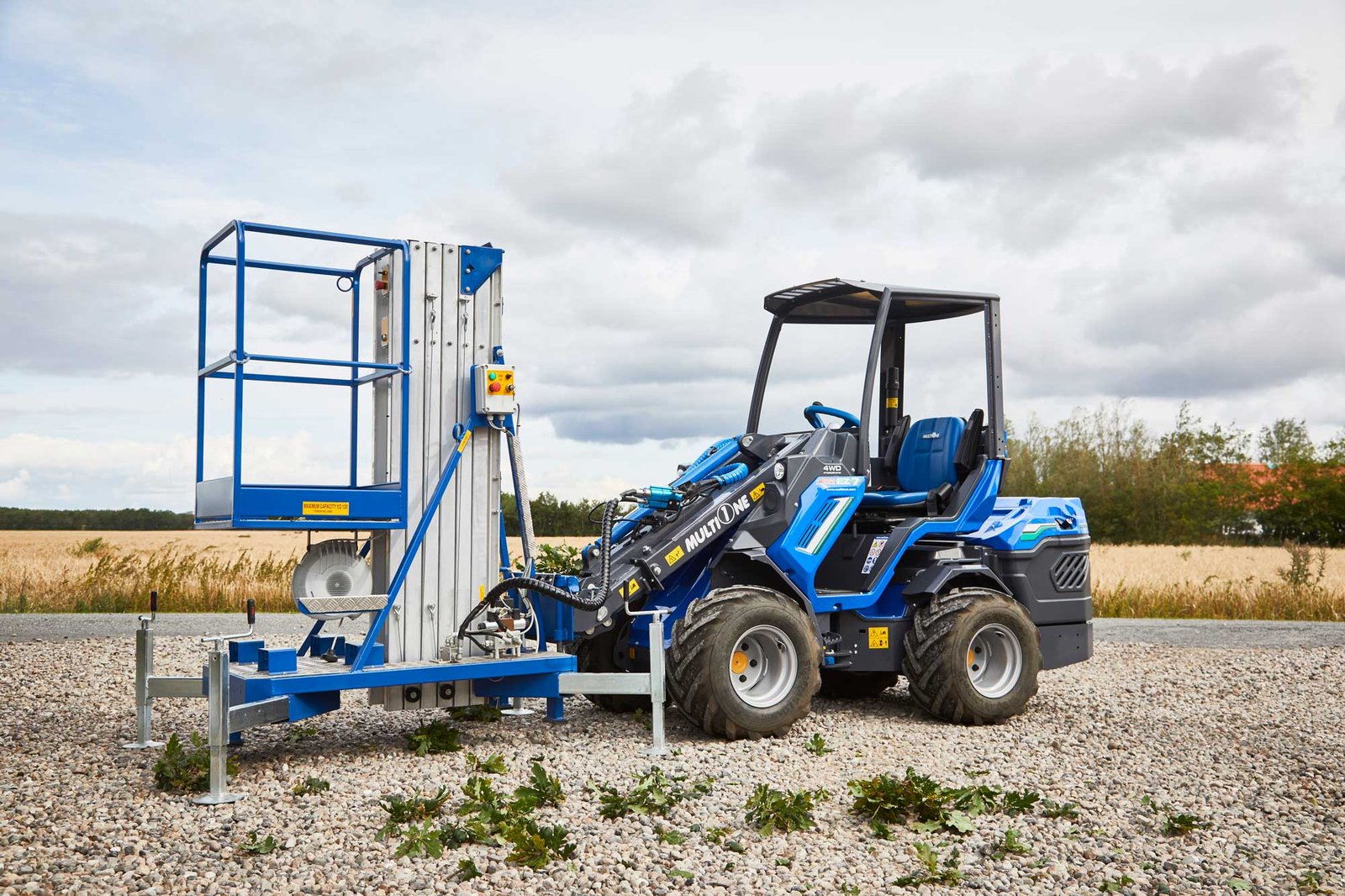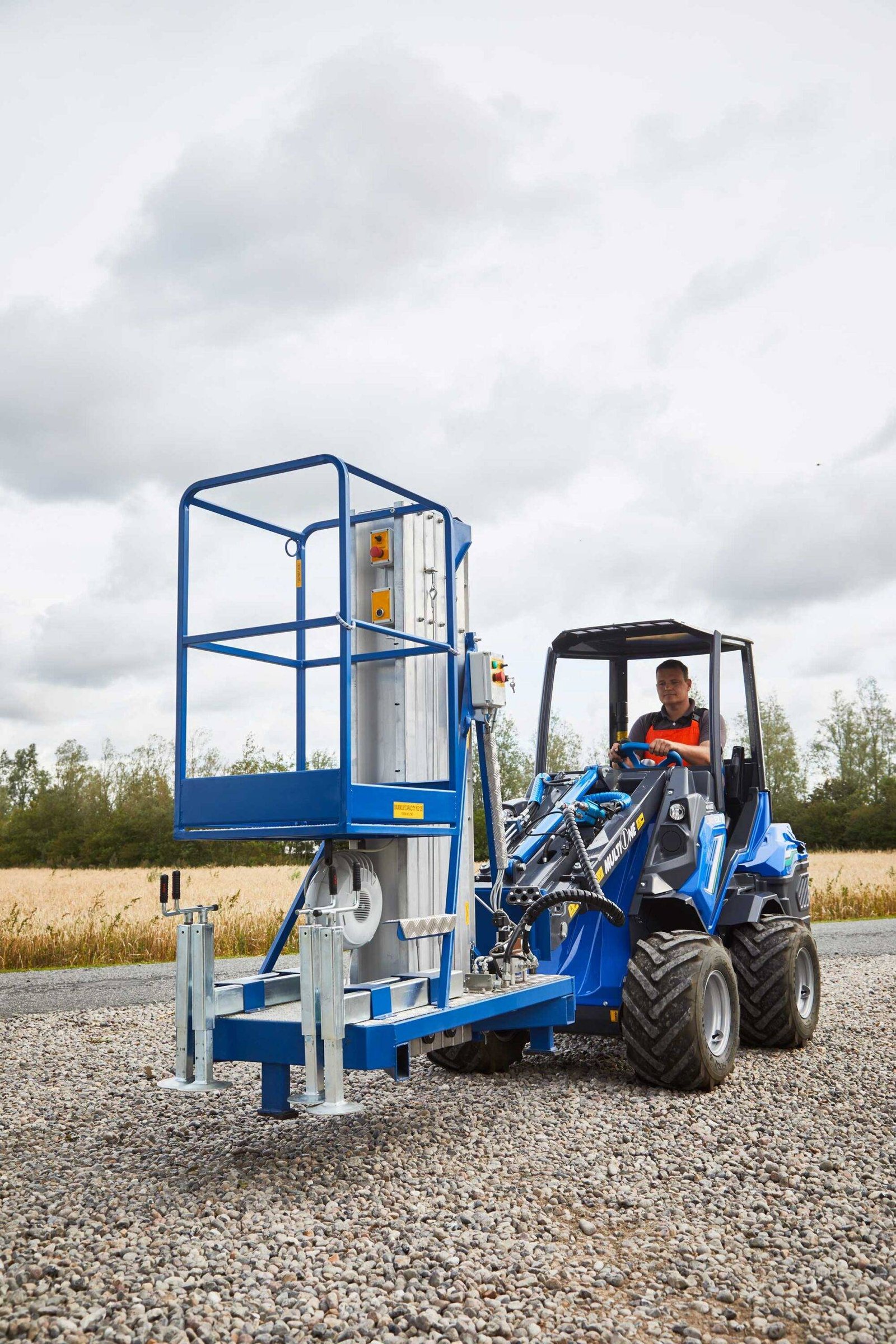 Arbejdsliften fra Multione fastgøres på maskinens redskabsfæste, hvilket gør det let og hurtigt at på- og afmontere den.