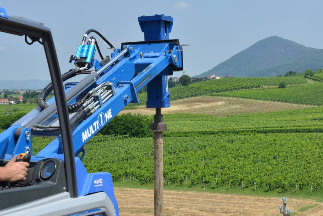 MultiOne-planter er ideel som hegnentreprenør i vinmarker. Det specialdesignede værktøj hjælper med at holde indsatsen, mens det påvirkes i jorden på få sekunder. MultiOne-bommen giver håndtering af lange indsatser.