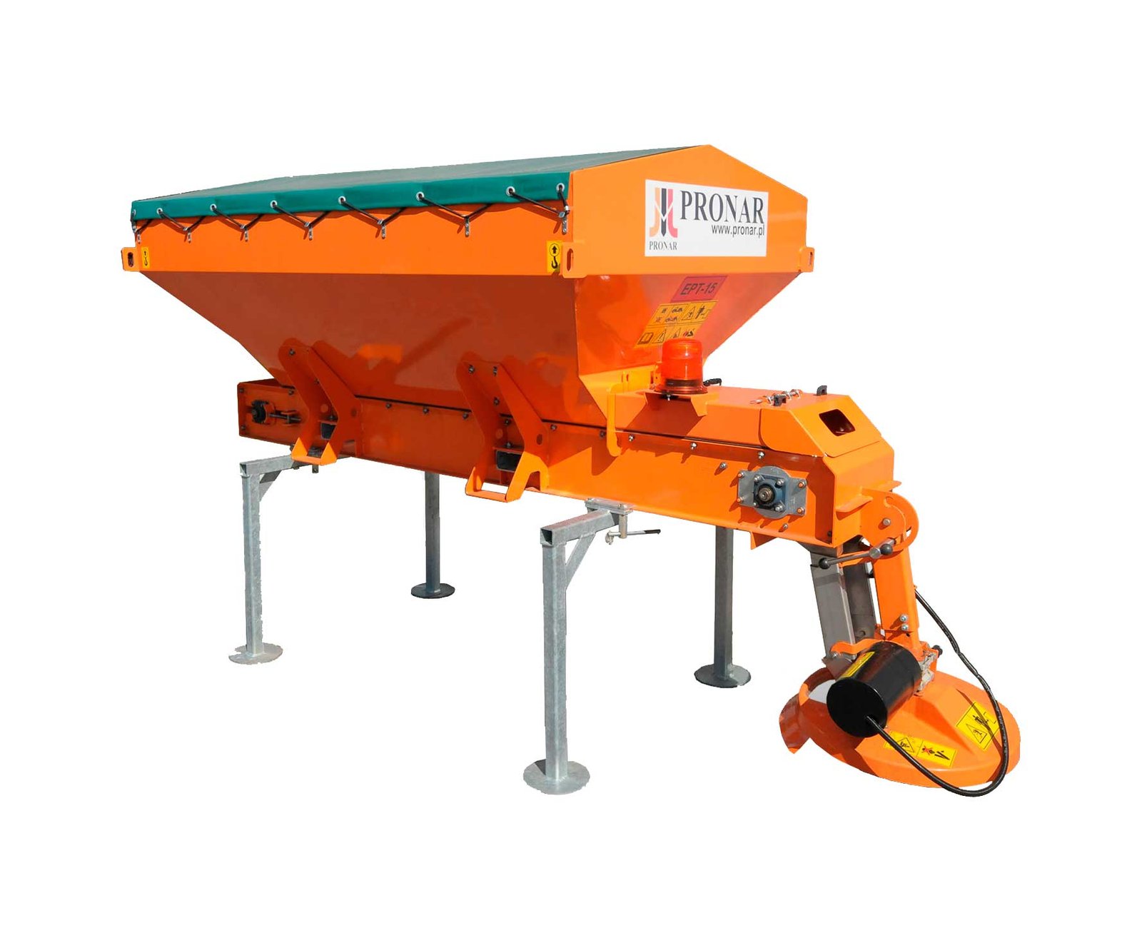 EPT-sprederen er konstrueret til montage på mindre ladbiler og leveres som en samlet enhed – ”plug-and-spread”. Sprederen er elektrisk drevet, og materialet