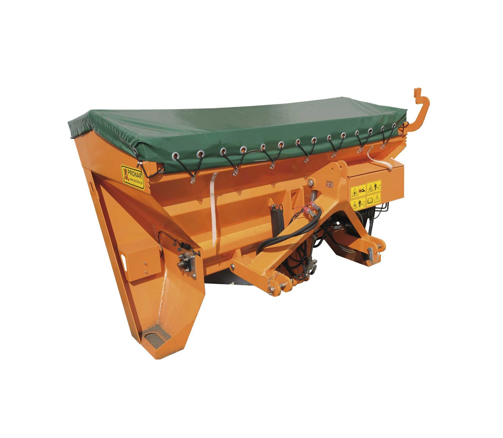 Maskinen er hydraulisk trukket og styres via en elektrisk styreboks. Der kræves derfor kun et DV olieudtag med mindst 40 l/min. Når spredebredde,
